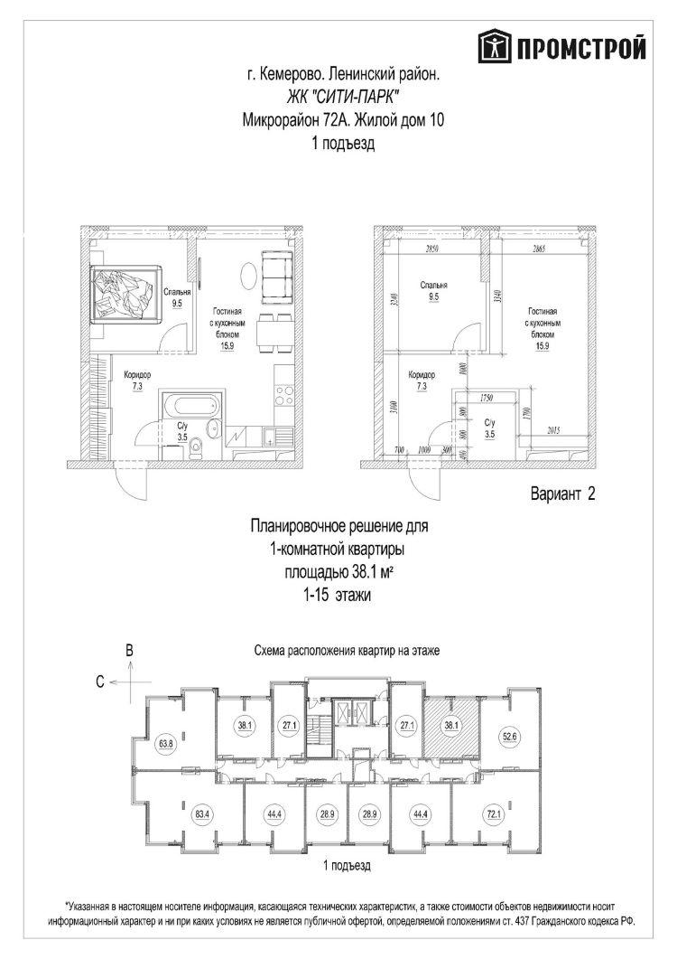 Артикул объекта: ЖК Планировка квартиры: Площадь общая (м2): 38.1