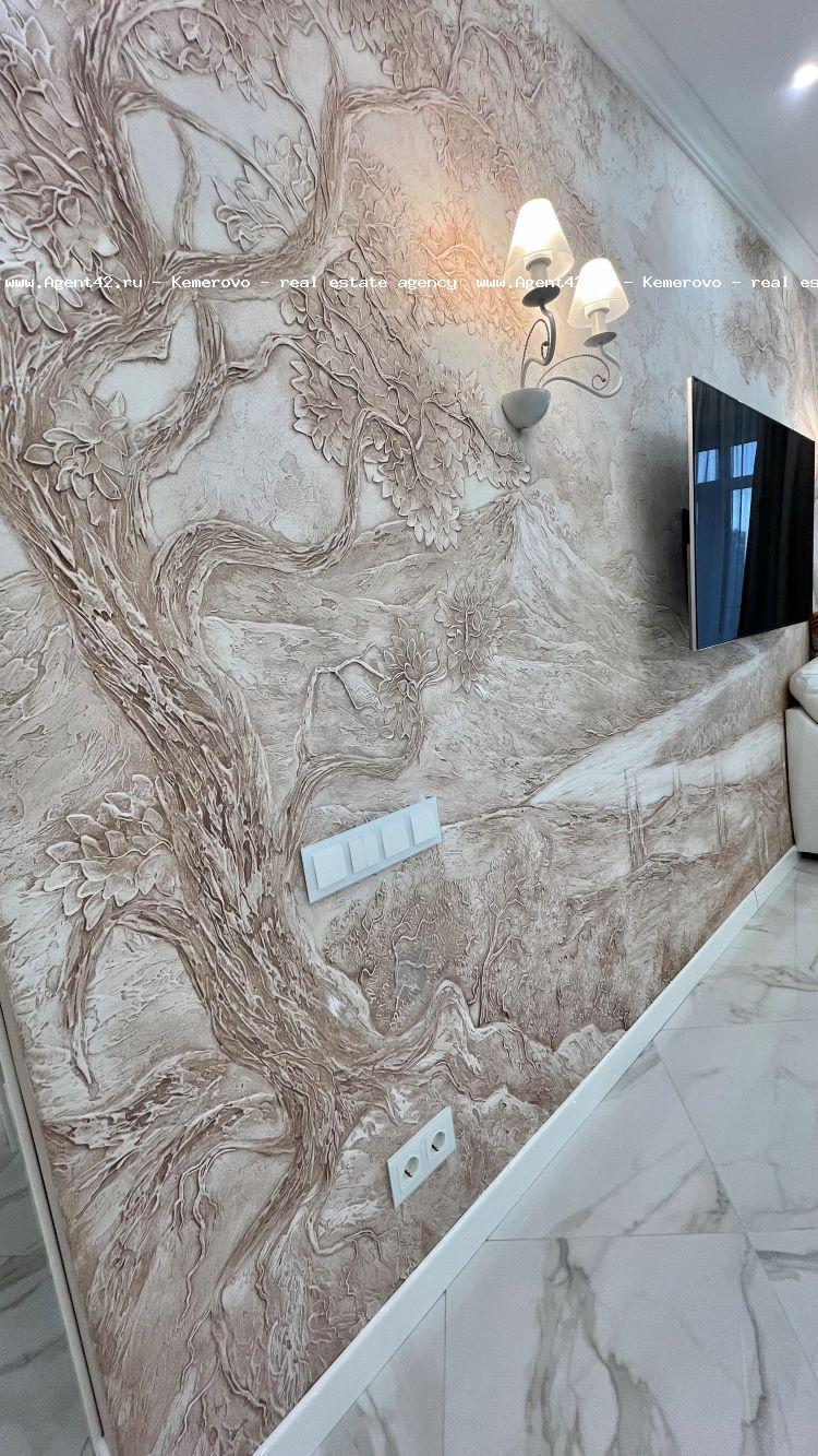 - Декоративная штукатурка с дизайнерской картиной в гостиной и с фреской в спальне;